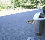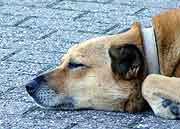 灰皿を見つけスパーっとやっていると、ベンチに寝そべる御主人の前でお休みになっている犬に遭遇。