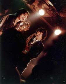 写真は下北沢ロフトでのライブをお客さんが撮ってくれたもので。彼とのライブの写真はこれ一葉しかなく私的には貴重なもの。あたしの髪がおばさんっぽいとか色々あるわけだが、このステージでは珍しくもキー坊までがテナーを吹いていたらしい。 お互いに、特に上田氏の髪はフサフサだし、無情な時の流れを感じたりもするが、この方との出会いはその後の活動に決定的な影響を及ぼした。