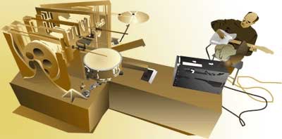 サンプリングされた音ではなく、シンバルもスネアも本物が鳴る仕掛け。