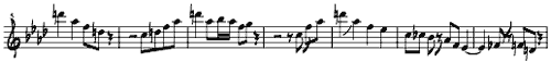 記譜するとこのようなものになるが、4拍目の裏にアクセントがあるせいで、次の16分音符の4つと4拍目の裏の音(Bb)が連符(Bb B Bb Ab F)に聴こえる。ようするにニュアンスの問題なのだが、ティモンズのように響かせることはそれなりに難しい。
