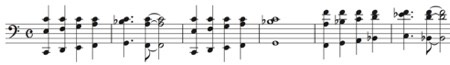トランペットとトロンボーン2,ホルンで構成されたサウンドは、メジャー7系の簡単なものだったが、当時は衝撃を受けた。こういったサウンドの好みは、当時周りで受けの良かったショスタコヴィッチの交響曲第5番の流れがあった。二楽章の途中にホルンがメインになるくだりがあって、それは長7度の響きだった。それに至るまでも、ホルンのキーで言えばCの上でHとAが鳴ってどぎついのだけど、この譜面で3拍子になって5小節目の音程にやんやの喝采をしていたのだ。私らの流儀で言えばFメジャーセブンということになる。