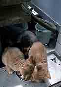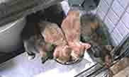 中央の薄茶色2匹が積極的で、皿までカジります。「オイ、それは食えんぞ」(このどちらかが「みかん」になるわけですが、この時点では知る由もありませんでした)