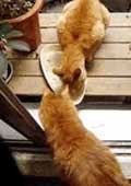 ご覧の通り、今やみかんの方が大きくなりました。母猫は食事中に近付くみかんを威嚇したりはしません。薄情そうに見えても、ちゃんと自分の息子だと認識しているのかもしれません。![]()