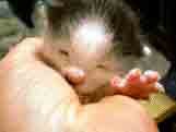 同居初年度の小さいころは、寝返りで押しつぶす可能性だってあるし、ベッドで一緒に寝るなどということは出来ませんでした。ベッドの下に置いたケージの中で休むように躾け、4月のまだ寒い夜には、暖をとるため、スチール製のペットボトルに熱湯を入れ、タオルでグルグル巻きにしたものをケージの中に入れました。小さいパスタはそれに跨がり、しがみつくようにして寝ました。